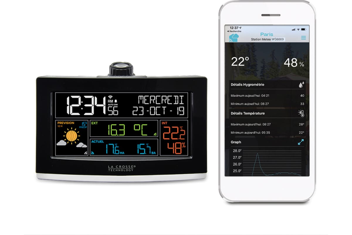 - При подключении к Wi-Fi метеостанция будет отображать на дисплее различные данные: (информация от AccuWeather)