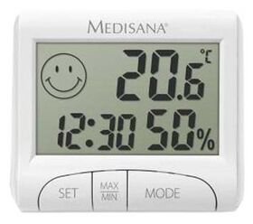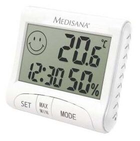 батарейки в комплекте; отображение информации: цифры и символы; отображение уровня комфорта; минимальный показатель температуры: -10 °C; максимальный показатель температуры: 50 °C