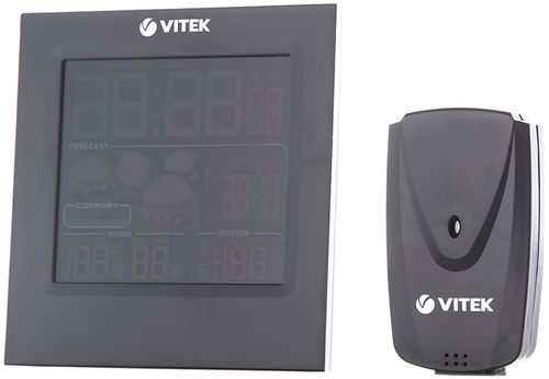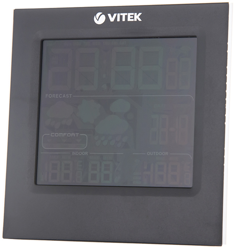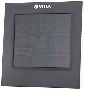 Для упрощения эксплуатации в конкретных условиях доступен выбор единиц измерения: градусы Цельсия или Фаренгейта. Элементы управления с буквенными обозначениями расположены над дисплеем. В конструкции предусмотрена подставка, поэтому метеостанцию VITEK VT-6411 можно разместить на столе или другой горизонтальной поверхности. Корпус изготовлен из высококачественного пластика, который отличается прочностью.