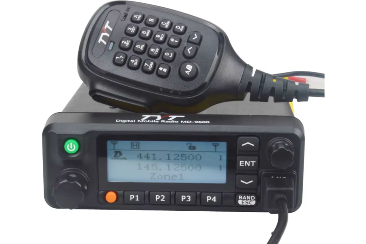 TYT MD-9600 цифровая стационарная/автомобильная радиостанция VHF/UHF. MD-9600 является последней на данный момент цифровой двухдиапазонной автомобильной радиостанцией производства компании TYT для радиолюбительского и профессионального использования.