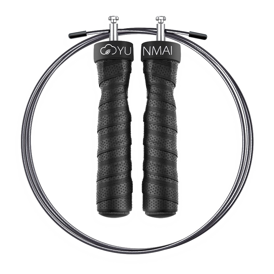 В конструкции скакалки Yunmai используются подшипники из углеродистой стали в рукоятках, благодаря которым достигается плавное вращение тросика без узлов и спутывания, а также увеличивается долговечность скакалки.