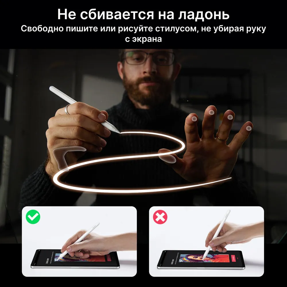 -Во время использования стилуса кисть свободно может лежать на экране iPad