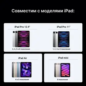 Совместимость: iPad Pro 12.9-inch (6th generation), iPad Pro 12.9-inch (5th generation), iPad Pro 12.9-inch (4th generation), iPad Pro 12.9-inch (3rd generation), iPad Pro 11-inch (4th generation), iPad Pro 11-inch (3rd generation), iPad Pro 11-inch (2nd generation), iPad Pro 11-inch (1st generation), iPad Air (5th generation), iPad Air (4th generation), iPad mini (6th generation)