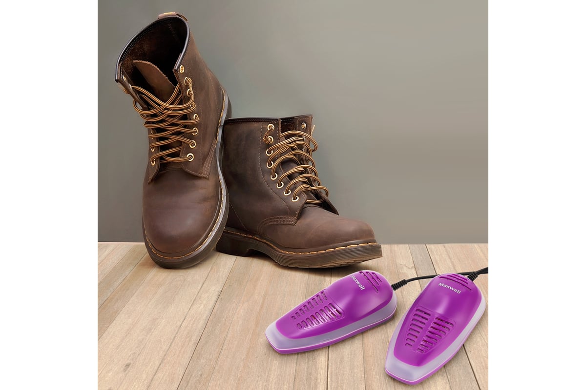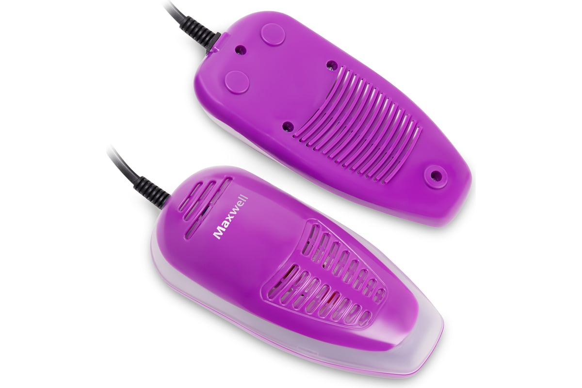 Сушилка для обуви MAXWELL быстро и эффективно избавит промокшие ботинки, сапоги, кроссовки или туфли от влаги и неприятного запаха. Просто поместите пластиковые вставки с нагревательными элементами внутрь пары обуви и включите сушилку в сеть.