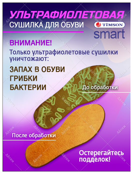 Ультрафиолетовая сушилка для обуви Timson Smart с таймером 2440 предназначена для быстрого и качественного просушивания обуви.