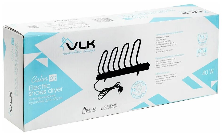 Нагревательный элемент: Ø 12 мм, Низкий уровень энергопотребления, Деликатная сушка при 50°-55°С, Удобно крепится на стену (встраивается в шкаф), Эффективно удаляет бактерий и сырость