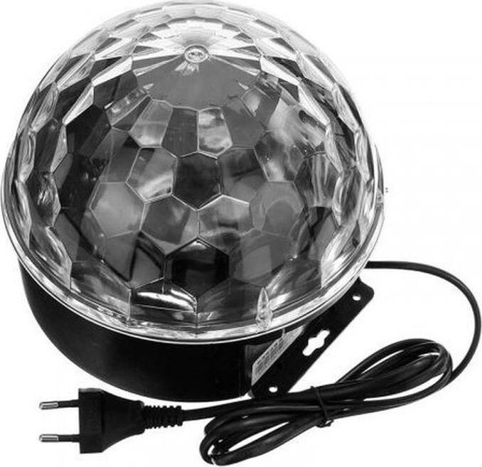 Диско шар можно прикрепить на потолок, стену или просто поставить на стол. Led диско шар проигрывает музыку с различных носителей, таких как USB флешка, SD card.