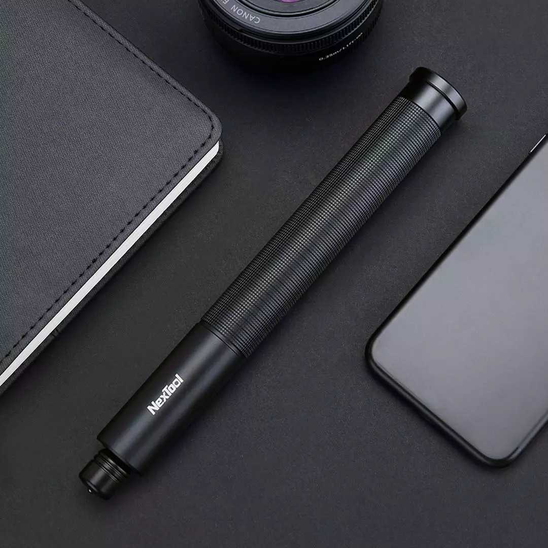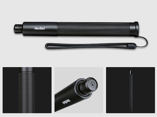 Дубинка Nextool Safety Survival Telescopic Rod изготовлена из авиационного алюминиевого сплава 7075 – твердого, износостойкого и устойчивого к коррозии материала. Ручка имеет противоскользящее покрытие. Вес дубинки около 200 грамм, ее удобно носить с собой.
