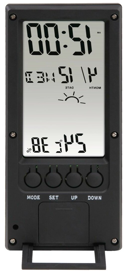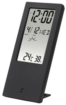 батарейки в комплекте; настройка единиц измерения; сохранение температурных значений; отображение информации: цифры и символы; минимальный показатель температуры: -40 °C; максимальный показатель температуры: 50 °C