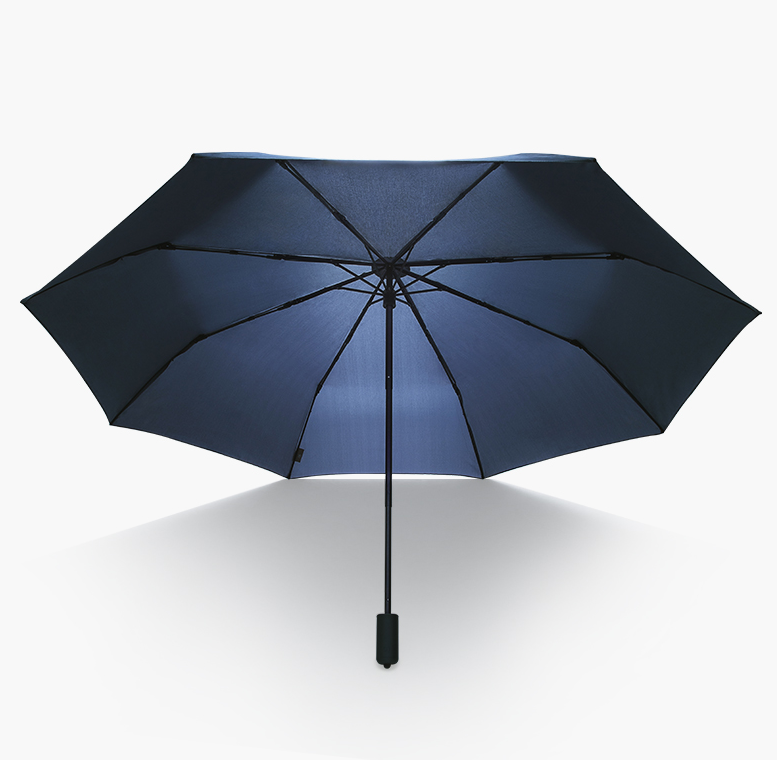 Плотный материал защищает от промокания и быстро сохнет. Тёмно-синий цвет купола органично вписывается под любую одежду и стиль: от классического, официального, унисекс до повседневного или casual. Ткань хорошо противостоит ультрафиолету за счёт специального покрытия. Навеса диаметром 115 см хватает для двух человек.