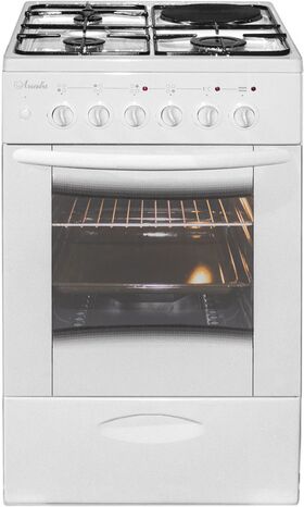 Особенности Мощность вехнего ТЭНа: 1 кВт, Мощность нижнего ТЭНа: 1.4 кВт, Мощность ТЭН-гриля: 1.6 кВт. Температура жарочного шкафа регулируется от 50 до 300 С. Подставка для посуды малого диаметра, противень, решетка. Газ: природный или сжиженный.