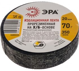 Изоляционная прорезиненная лента ЭРА Х/Б, 70 г, 20 мм, 350 мкм Б0002454 предназначена для надежной электроизоляции проводов.