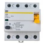 Выключатель IEK ВД1-63 (MDV10-4-040-100) дифф.тока УЗО 40A 100мА AC 4П 400В 4мод белый (упак. 1шт)