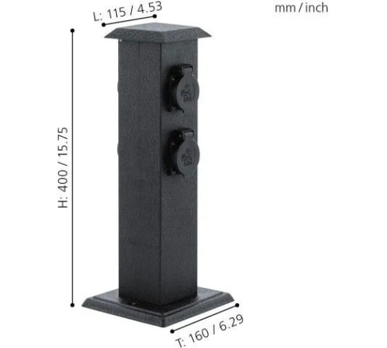 Уличный блок штекерных розеток EGLO из коллекции PARK 4, выполненный в черном цвете, предназначен для обеспечения удобства в подключении садовой техники. Корпус изготовлен из стали. Блок состоит из четырех розеток, спрятанных за герметично закрывающимися пластиковыми крышками. Квадратное основание позволяет легко установить данный прибор в любом удобном месте участка. Уличная розетка имеет класс влагозащиты IP44.