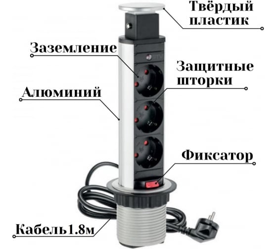 Модель проста в установке и использовании, вертикальный блок розеток работает без заеданий, не «ходит» в посадочной площадке, верхняя крышка покрыта лаком, тем самым исключая возможность повредить поверхность вертикального блока розеток при эксплуатации. Максимальная мощность 3600 Вт.
