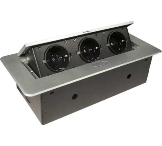 Мощность позволяет подключать большинство бытовых приборов. Выдвижная розетка полностью из металла, лицевая панель выполнена из алюминиевого сплава, установочная коробка и сопутствующие элементы из стали. Это положительно сказывается на надежности и долговечности конструкции.
