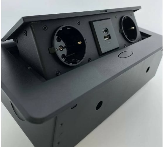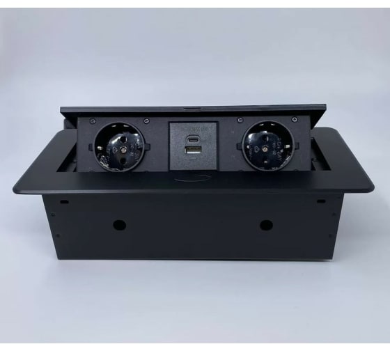 Выдвижная горизонтальная розетка, представляет собой металлический прямоугольный розеточный блок на 2 EURO, 2 USB C + A (18W).