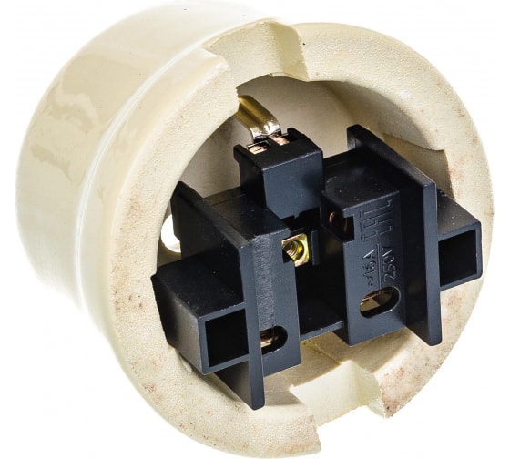 Розетка в стиле ретро представляет собой накладное устройство с механизмом из термостойкой пластмассы, а корпус выполнен из высококачественной керамики.