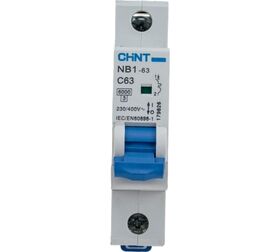 Автоматический выключатель CHINT NB1-63 1P 63A 6кА характеристика C 179626 используется для защиты распределительных и групповых цепей от перегрузок и короткого замыкания. Применяется во вводно-распределительных щитах жилых и административных зданий или в промышленности.
