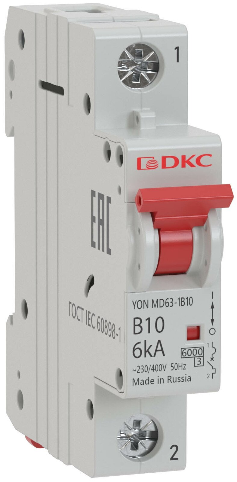 Автоматический модульный выключатель DKC YON MD63 1P 4А C 10kA MD63-1C4-10 номиналом 4 A с характеристикой расцепителя "C" и отключающей способностью 10 кА предназначен для применения в электрических цепях напряжением до 400 В переменного тока частоты 50 Гц, их защиты при перегрузках и коротких замыканиях, проведения тока в нормальном режиме оперативного включения и отключения указанных цепей. К выключателю могут присоединяться независимый расцепитель в отдельном модуле и вспомогательные контакты в отдельном модуле. Независимый расцепитель и вспомогательные контакты заказываются отдельно и устанавливаются на выключатели потребителем по мере необходимости.