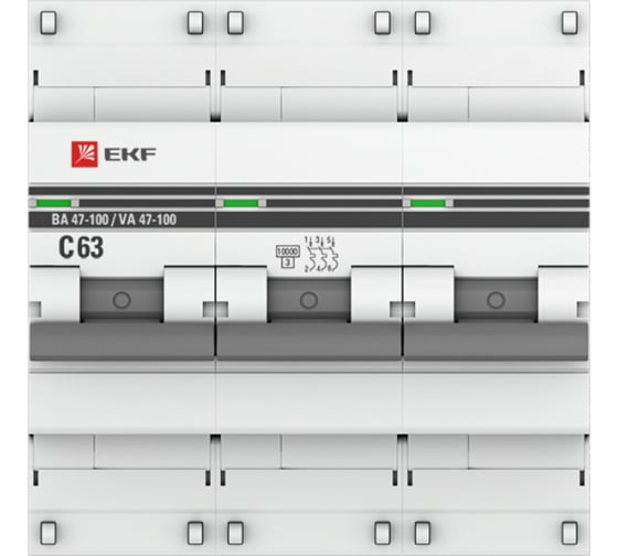 Преимущества EKF 63А PROxima (С) ВА47-100 10кА mcb47100-3-63C-pro