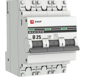 Автоматический выключатель EKF 3P 25А В 4,5kA ВА 47-63 PROxima mcb4763-3-25B-pro - механический коммутационный аппарат соответствуют ГОСТ Р50345-2010.