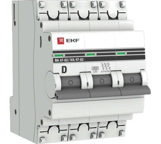 Преимущества EKF ВА 47-63 PROxima 3P 10А D 4,5kA mcb4763-3-10D-pro