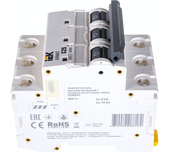 Номин отключающая способность при коротком замыкании EN 60898 при 400 В, кА 6.0