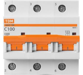 Автоматический выключатель TDM ВА47-100 3Р 100А 10кА С SQ0207-0077 - вводно-распределительное устройство для бытовых электроустановок. Изделие обеспечивает проведение тока в нормальном режиме. В случае перегрузок или возникновения коротких замыканиях автомат оперативно производит отключение электропитания.