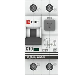 Технические характеристики EKF PROxima АВДТ-63 10А, 30мА, характеристика C, тип AС, 6кА DA63-10-30-AC