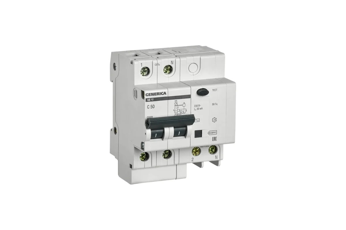 Технические характеристики GENERICA АД12 2Р 50А 30мА MAD15-2-050-C-030