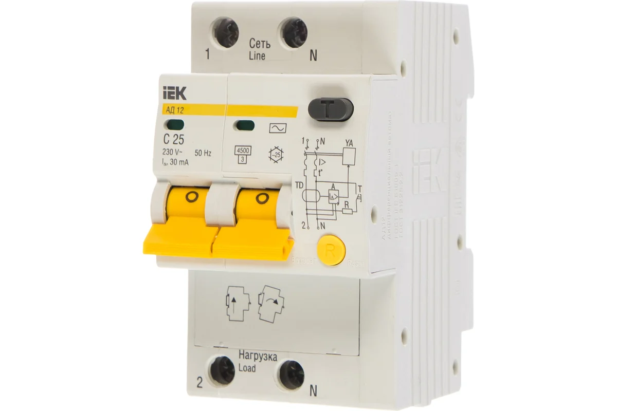 Технические характеристики IEK АД-12 2п, C, 25А, 30мА MAD10-2-025-C-030