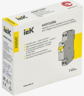 Автоматический выключатель дифференциального тока IEK АВДТ32ML тип A С16 10мА KARAT MVD12-1-016-C-010-A предназначен для защиты человека от поражения электрическим током при повреждении изоляции электроустановок, а также для защиты от перегрузки и короткого замыкания в сетях переменного тока напряжением 230 В и частотой 50 Гц.