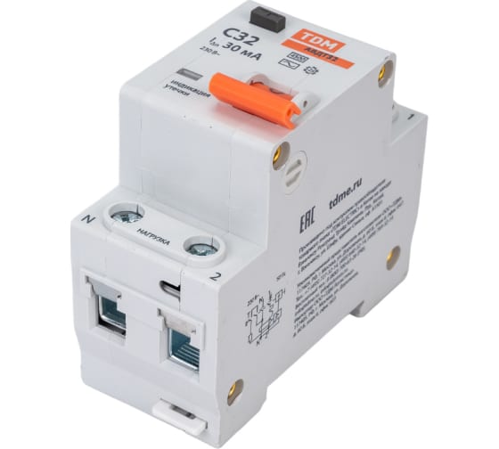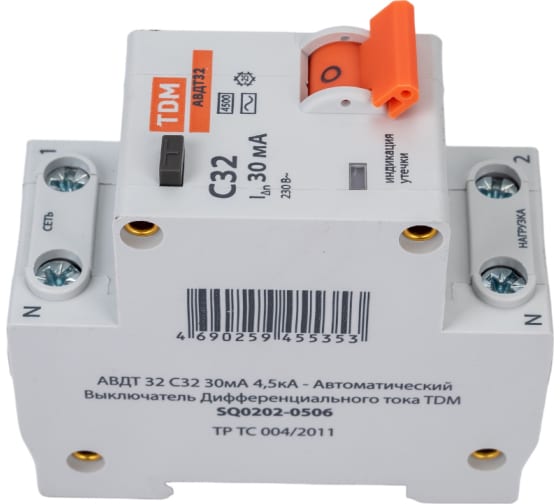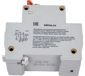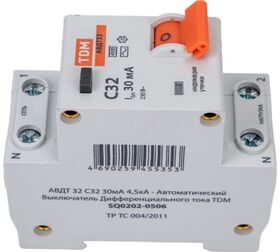 Технические характеристики TDM 32 2P(1P+N) C32А 30мА 4,5кА тип АС SQ0202-0506