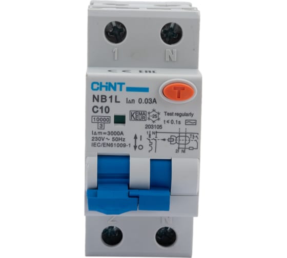 "Дифференциальный автоматический выключатель CHINT, NB1L, 1P+N, C10, 30mA, тип AC, 10kA, 36mm 203105" - Быстродействующий защитный выключатель, реагирующий на дифференциальный ток, со встроенной защитой от сверхтоков.
