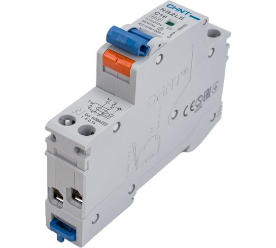 Дифференциальный автоматический выключатель CHINT, NB2LE, 1P+N, 16A, 30mA, 1 модуль, характеристика С, электронный тип, AС, 6kA 689002 для однофазных сетей в одном модульном исполнении(18мм) предназначен для защиты человека от поражения электрическим током при повреждении изоляции и электроустановок, а также для защиты от перегрузки и короткого замыкания в сетях переменного тока напряжением 230В и частотой 50Гц.
