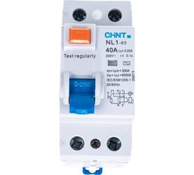 Технические характеристики CHINT NL1-63 6kA 2P 40A 30mA тип AC 200213