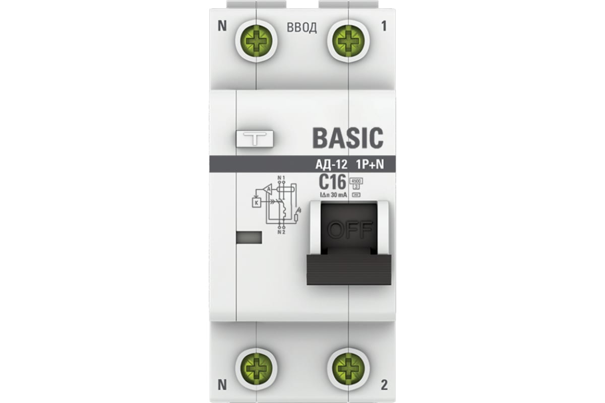 Технические характеристики EKF АД-12 1P+N 16А 30мА тип АС х-ка C эл. 4,5кА DA12-16-30-bas