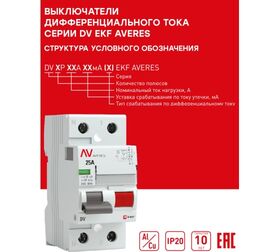 Технические характеристики EKF DV AVERES 2P, 40А/30мА, A rccb-2-40-30-a-av
