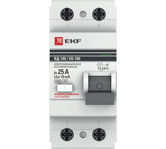 Преимущества EKF ВД-100 PROxima 2P, 25А/10мА elcb-2-25-10-em-pro