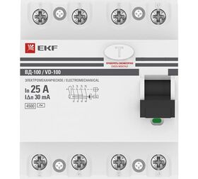 Преимущества EKF ВД-100, PROxima 4P, 25А/30мА elcb-4-25-30-em-pro