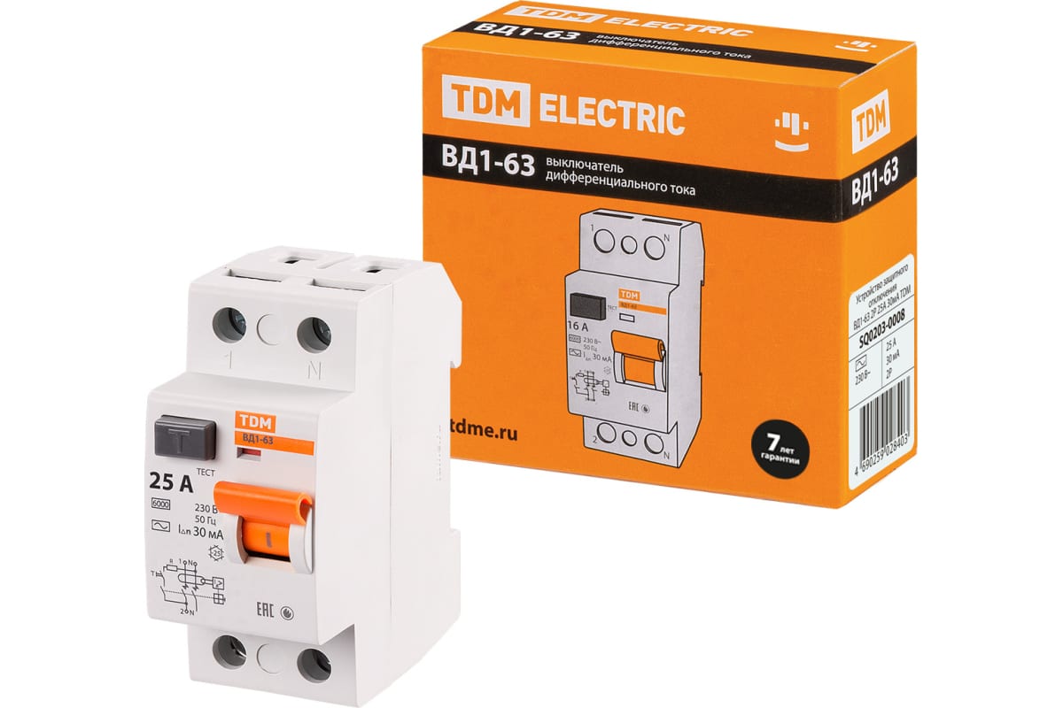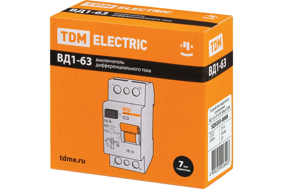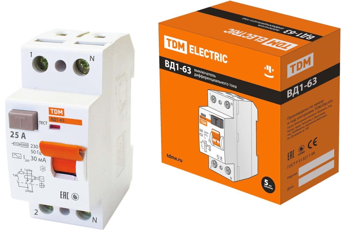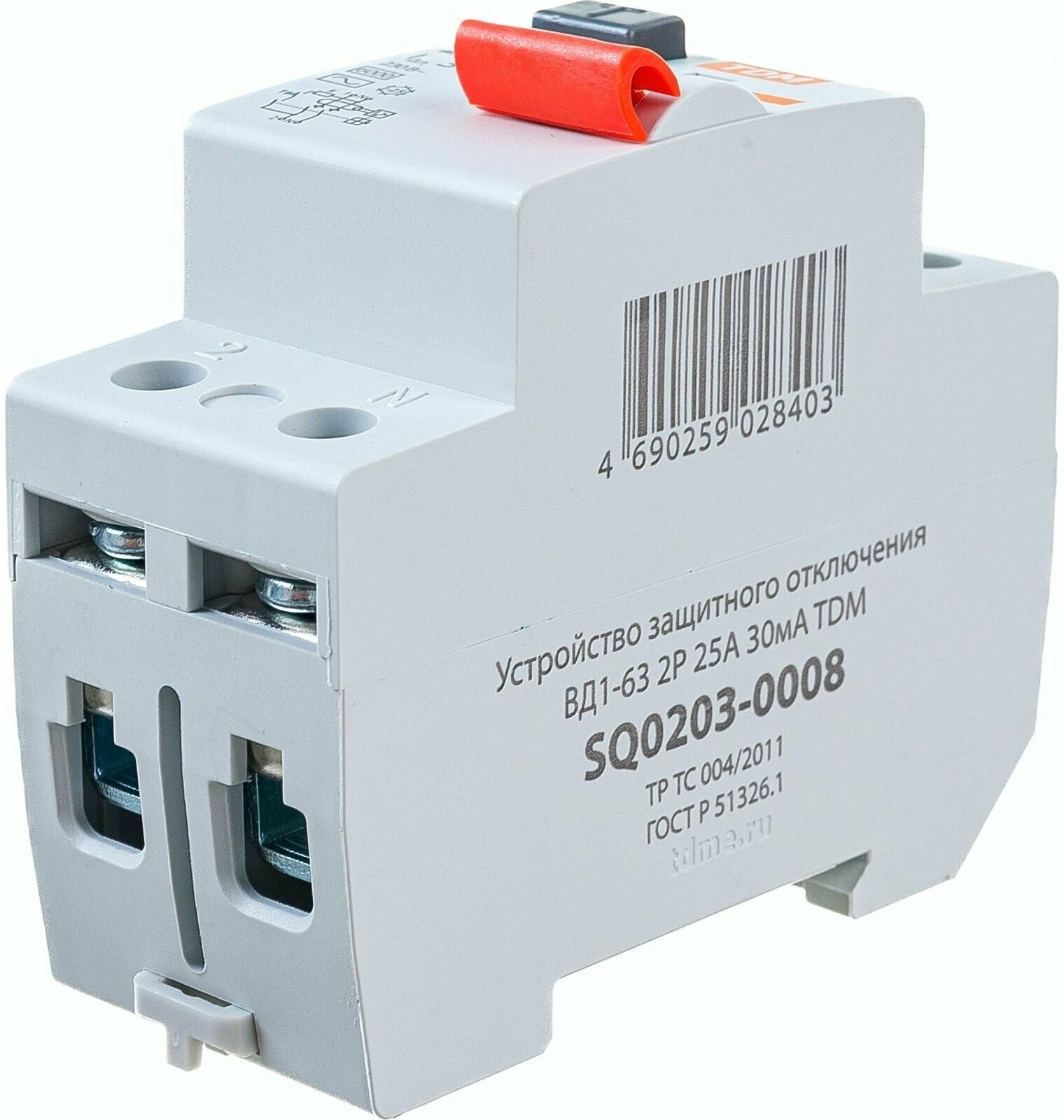 Технические характеристики TDM ВД1-63 2Р, 25 А, 30 мА SQ0203-0008