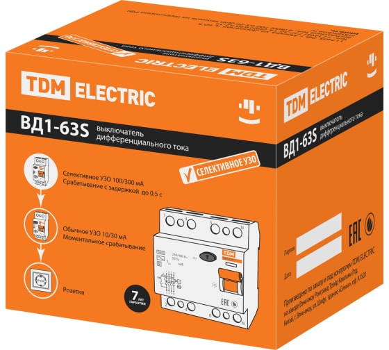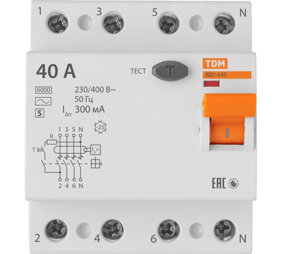 Технические характеристики TDM ВД1-63S 4Р 40А 300мА SQ0203-0069