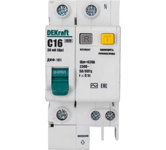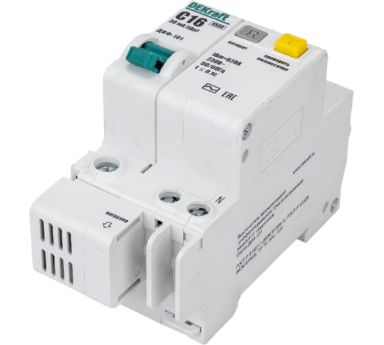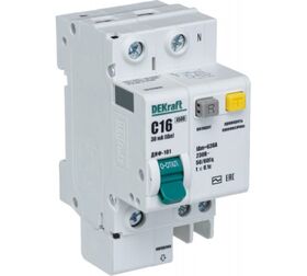 Технические характеристики DEKraft со встроенной защитой 1п+N 16А 30мА AC C 15157DEK