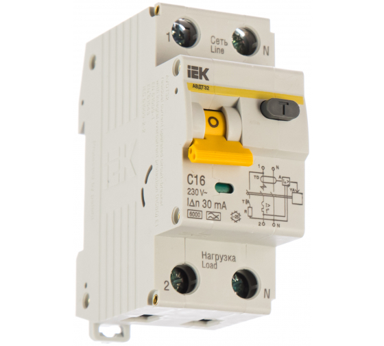 Преимущества IEK АВДТ-32 1п+N, C, 16А, 30мА MAD22-5-016-C-30