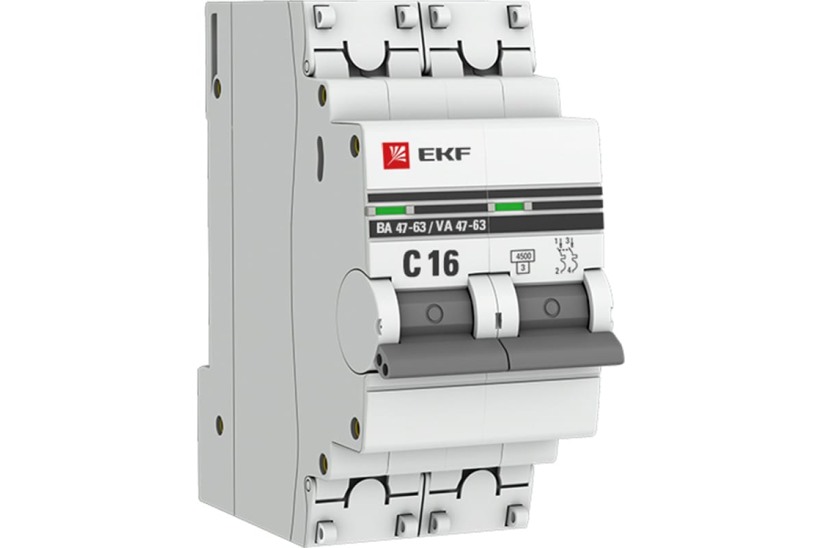Технические характеристики EKF PROxima 16А С ВА47-63 4.5кА mcb4763-2-16C-pro