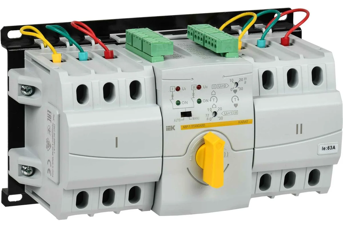 Устройство АВР IEK модульное, АВР-1 STANDARD 63А KARAT MAT10-063 предназначено для автоматического переключения на резервное питание электрических трехфазных цепей переменного тока. АВР применяются в промышленности, коммерческих и жилых объектах.