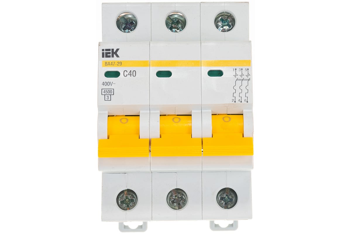 Технические характеристики IEK ВА47-29 3п, C, 40А, 4.5кА MVA20-3-040-C