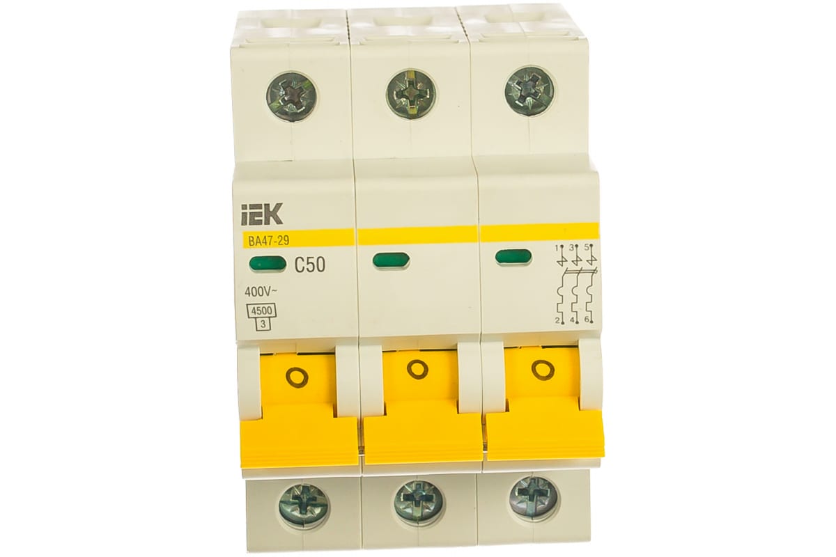Технические характеристики IEK ВА47-29 3п, C, 50А, 4.5кА MVA20-3-050-C