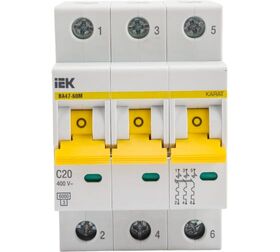 Преимущества IEK ВА47-60M 3Р 20А 6кА С MVA31-3-020-C